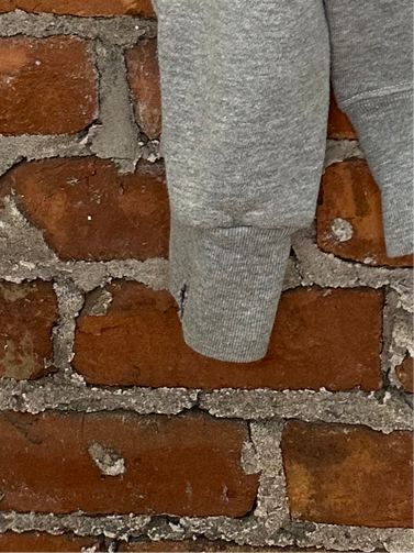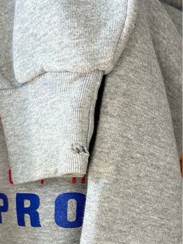 flaws: minor staining on front and sleeves, holes on both sleeve cuffs