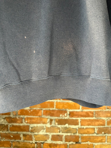 flaws: bleaching down front, stains on front bottom, minor staining on back and sleeve