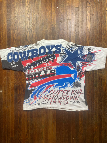 Vintage Buffalo Bills vs Dallas Cowboys magic johnson all over print T shirt